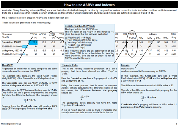 This is a good explanation to assist interpreting Australian Sheep Breeding Values (ASBVs), indexes and TOPs and CULLs.