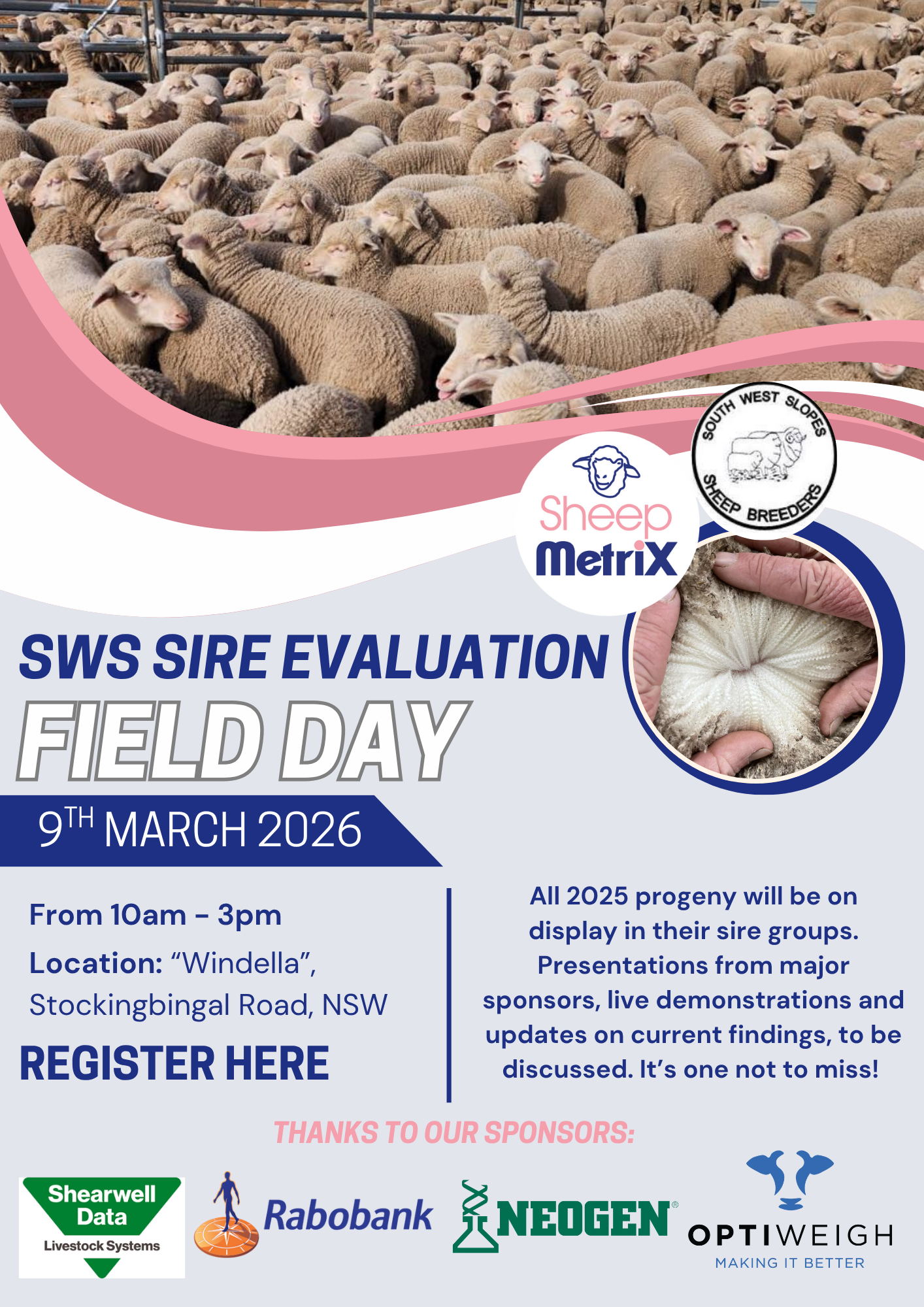 The SWS Sire Evaluation Field Day - will be held on Monday 9th March 2026 - to register your interest and stay up to date with Sire Evaluation updates please register your interest here.